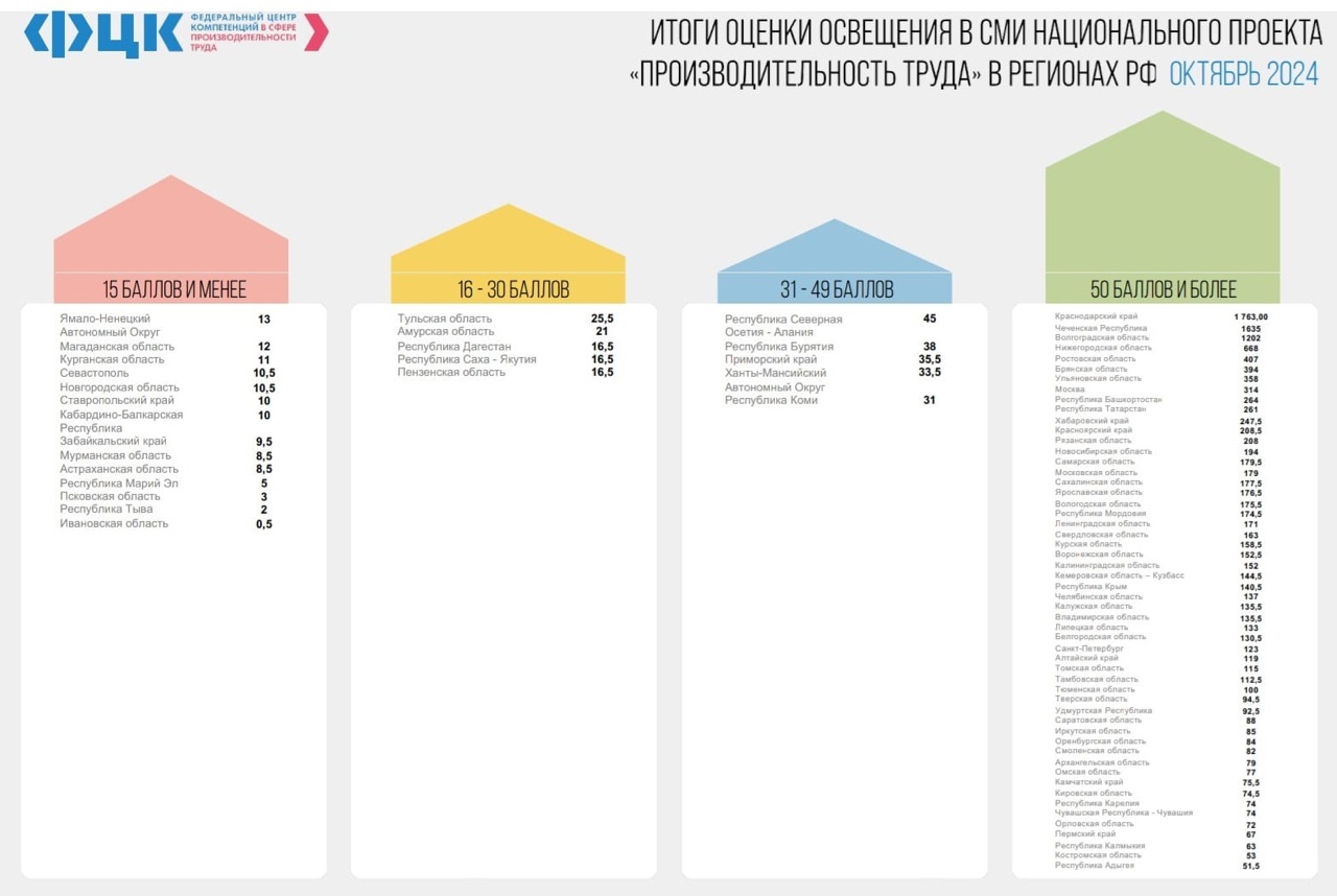 Чеченская Республика продолжает лидировать в рейтинге Федерального центра компетенции (ФЦК) по освещению мероприятий национального проекта «Производительность труда».